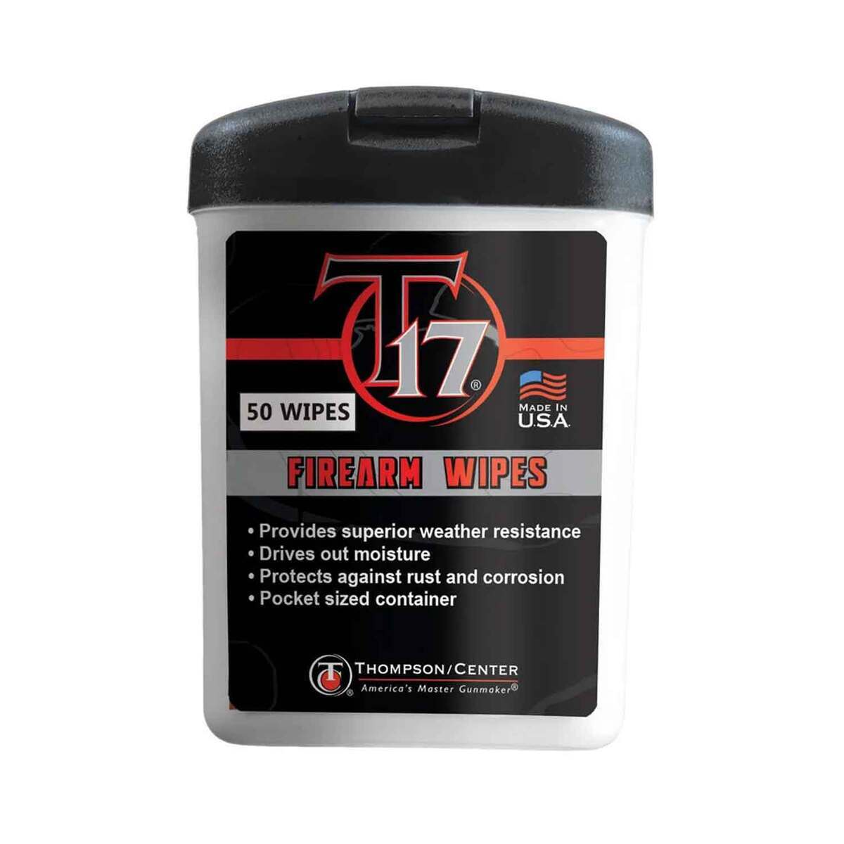Thompson T17 Firearm Wipes – A handy wipe that coats your firearm with a micro thin layer of protectant that withstand the corrosive effects of black powder fouling. Use these wipes prior to hunting in foul weather. Keeps your firearm in factory condition.