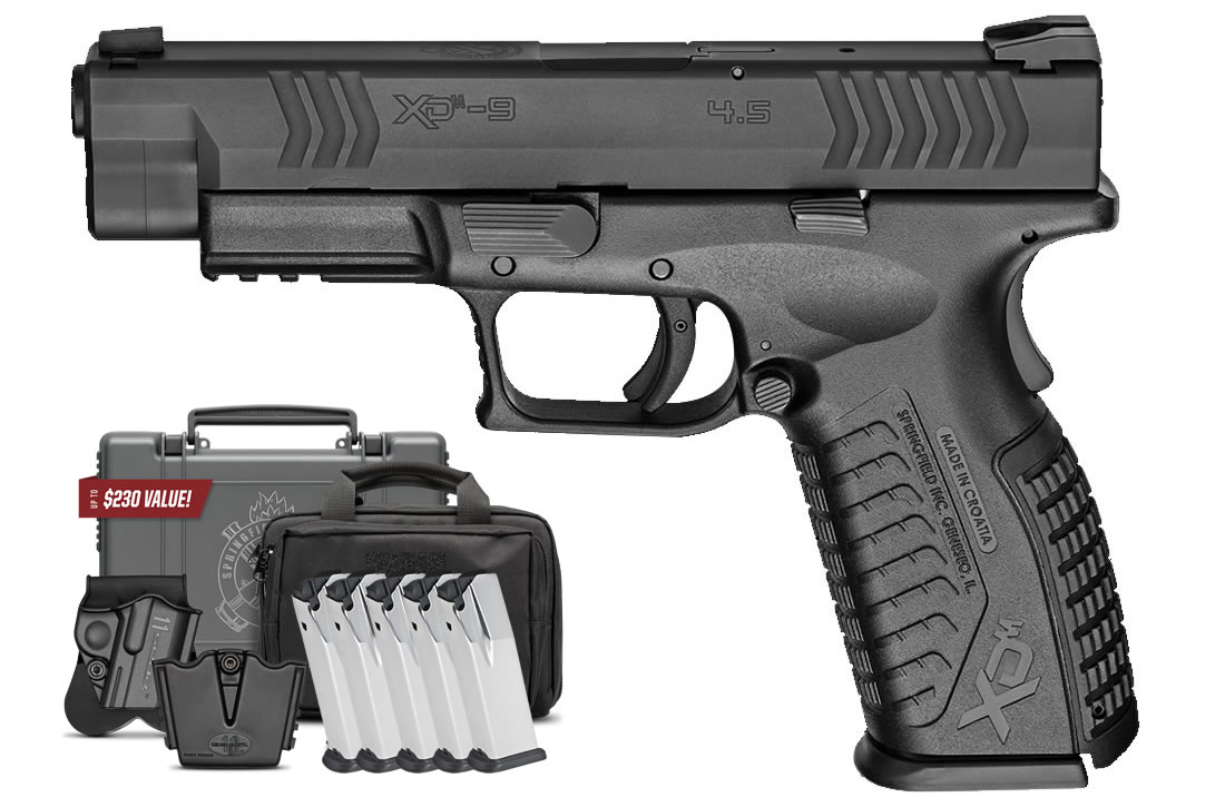 When you order the springfield xdm 9mm 4.5 full-size instant gear up package with 5 mags, range bag, holster, m, you are getting a factory-sealed kit with Springfield Armory’s warranty. The slide is cut with a cocking serration pattern that provides a positive grip, and the loaded chamber indicator is visible and tactile.