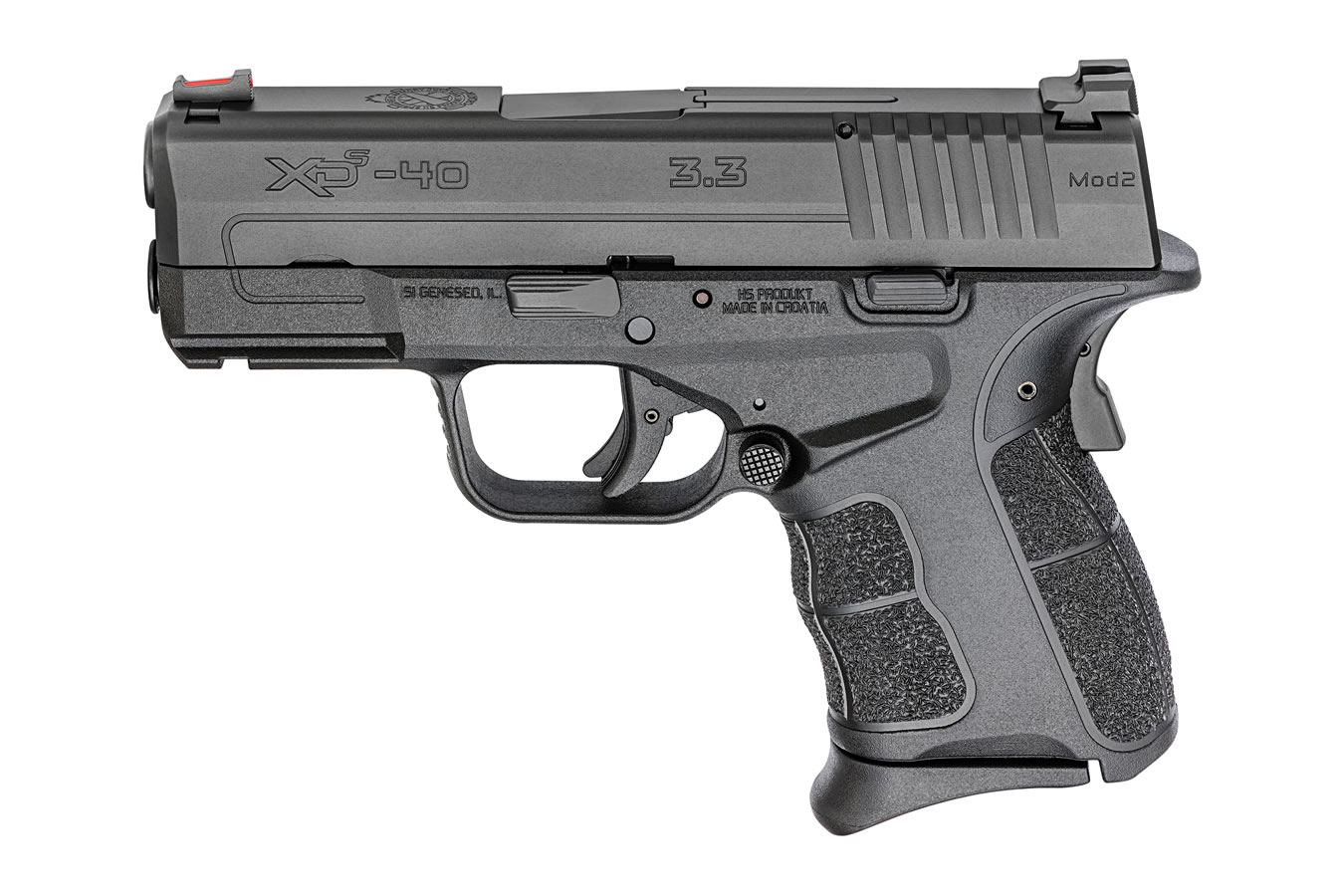 The springfield xds mod.2 40 s&w 3.3 single stack pistol with fiber optic front sight incorporates several upgrades over earlier XDS generations. The fiber optic front sight provides rapid target acquisition in varied lighting conditions, while the rear sight remains low-profile for snag-free drawing. The frame features a textured grip zone with a pronounced palm swell, giving you positive control during rapid fire sequences. Below are the key specifications and included accessories:
